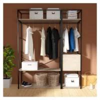 June – Portants Vêtements en bois et métal noir avec module fermé – Lot de 2