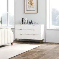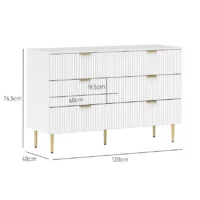 Homcom – Commode 6 tiroirs design effet cannelé piètement métal doré blanc