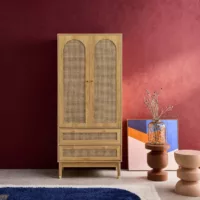 Judith – Dressing penderie 2 portes 2 tiroirs cannage