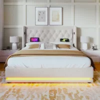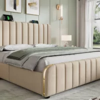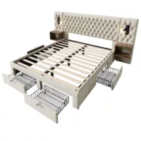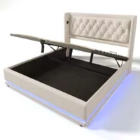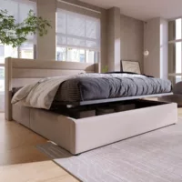 Lit avec rangement 200×200 cm TRADA SELVA200-P-T-BE coloris beige