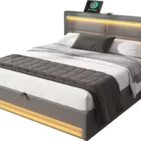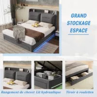 Lit avec rangement 160×200 cm VASAGLE coloris gris