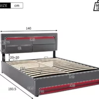 Lit avec rangement 90×200 cm SWEIKO YCFR000169 coloris gris