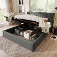 Lit coffre 140×190 cm 140X190CM-SANS MATELAS-GRIS coloris gris