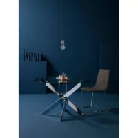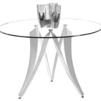 Table à manger ronde en verre trempé avec pieds en métal chromé – diamètre 140 x hauteur 76 cm