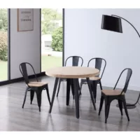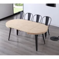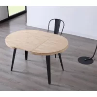 Table à manger ronde extensible en bois coloris chêne nordique pieds noir – diamètre 100-180 x hauteur 76 cm
