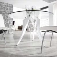 Table à manger ronde design beniza 120cm – plateau verre trempé et pieds métal blanc brillant