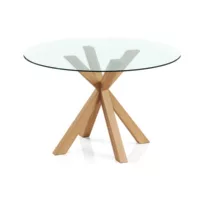 Table à manger ronde – 120cm – verre – tauwa naturel