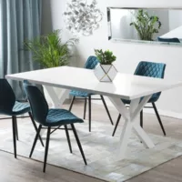 Table de repas kenton marbre blanc 140 cm 80 cm verre de sécurité 180096
