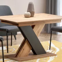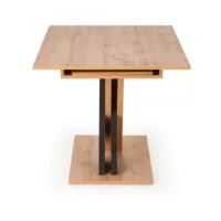 Table de salle à manger extensible avec pied central bicolore et plateau aspect chêne apodis 399