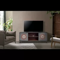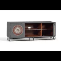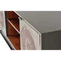 Wood mandala – Meuble TV en manguier et pieds en métal gris et marron