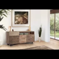 Wood mandala – Buffet en manguier pieds métal gris et marron