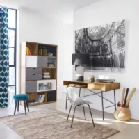 Bureau bibliothèque avec rangements finition bois clair chêne L115 cm WISSEM