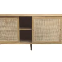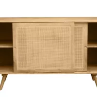 Buffet en bois manguier massif et cannage rotin 2 portes coulissantes L135 cm ACANGE