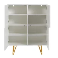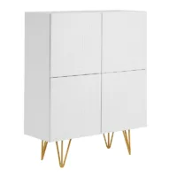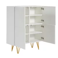 Buffet haut design gravé blanc mat et métal doré 4 portes L86 cm OZEN