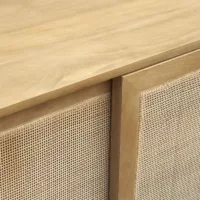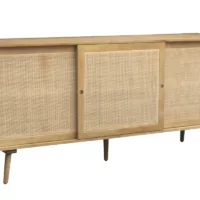 Buffet en bois manguier massif et cannage rotin 3 portes coulissantes L180 cm ACANGE