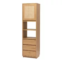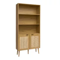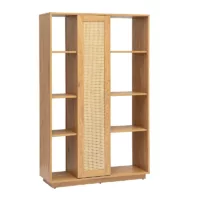 Bibliothèque étagère avec rangements finition bois clair chêne et cannage rotin L50 cm SEVILLE