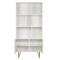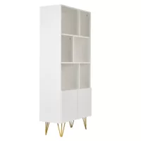 Bibliothèque design gravée blanc mat et métal doré 2 portes L86 cm OZEN