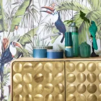 Gatsby – Buffet 3 portes en manguier massif et acier effet doré L174