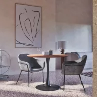 Circle – Table à manger ronde en placage noyer et acier noir 4/5 personnes D100