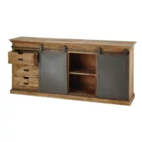 Germain – Buffet 6 tiroirs et 2 portes coulissantes en manguier massif L190