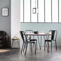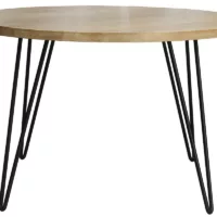 Table à manger ronde industrielle bois manguier massif et métal D125 cm ATELIER
