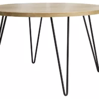 Table à manger ronde extensible en bois clair chêne massif et métal L120-170 cm OLGA