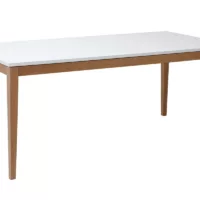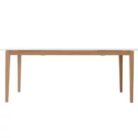 Table à manger scandinave extensible blanche pieds bois rectangulaire L180-260 cm DELAH