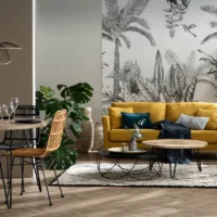 Table à manger rectangulaire finition bois chêne et métal noir L200 cm MAGDA