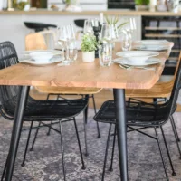 Table à manger rectangulaire industrielle en bois massif et métal noir L200 cm VALLEY
