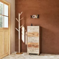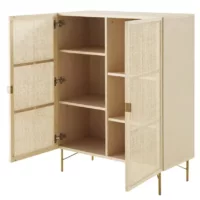 La commode AMANA se distingue par son design bohème chic. Son revêtement en papier décor effet bois et ses 3 tiroirs ornés de cannage rotin créent une atmosphère chaleureuse et accueillante. Ce mélange de matériaux ajoute une note de raffinement tout en s’intégrant harmonieusement à divers styles d’intérieur.