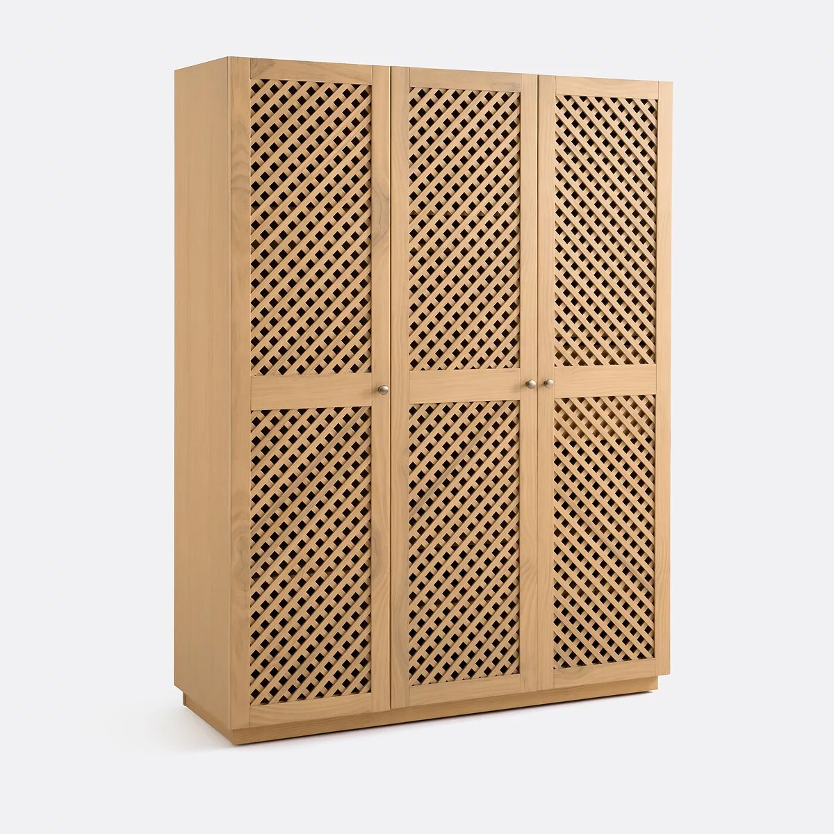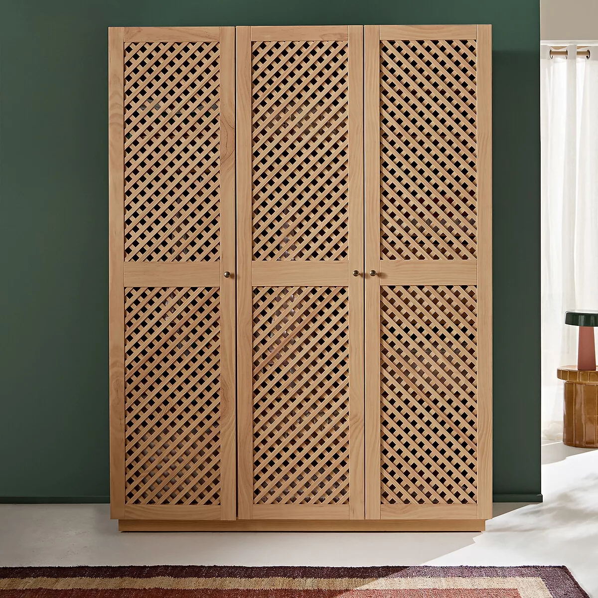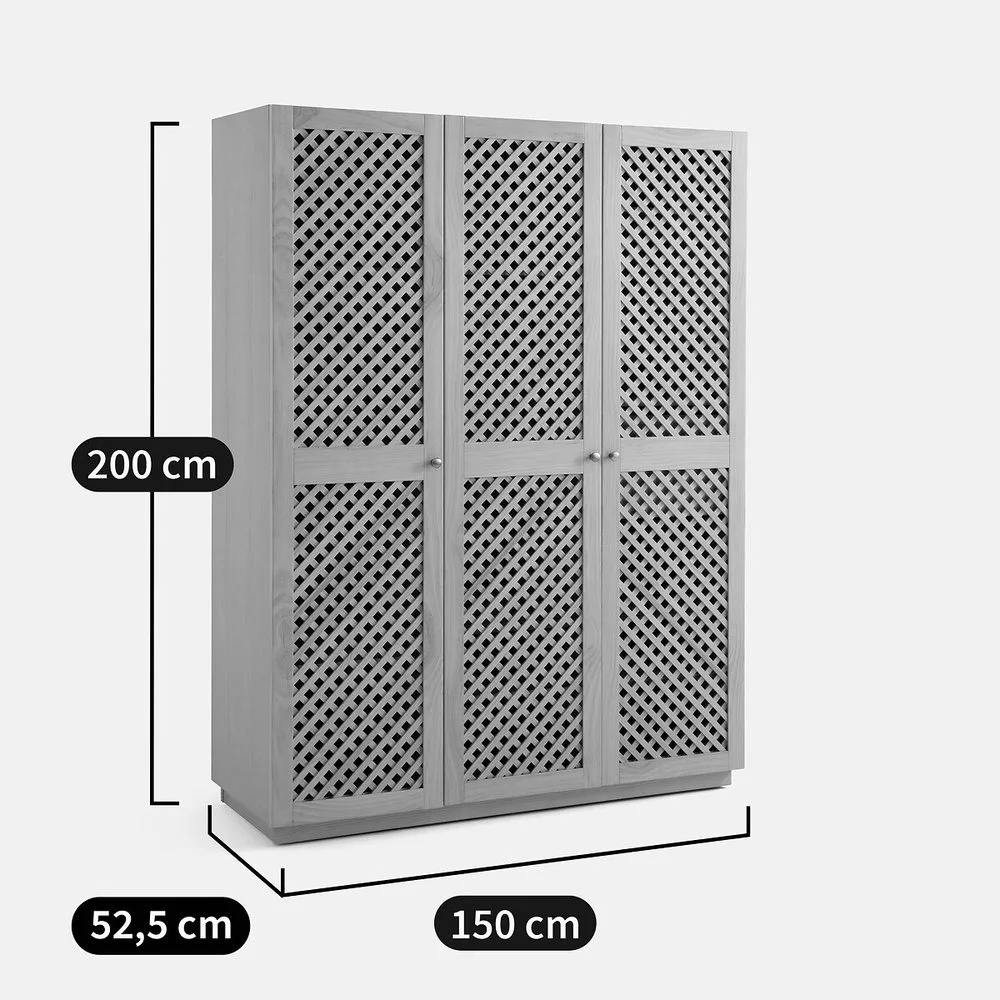 Jeu de pleins et d’ajourés, lignes sobres, belles dimensions. L’armoire 3 portes Quadri, travaillée en MDF et pin certifiés FSC®, vous offre un très bel espace de rangement derrière ses portes : étagères, barres de penderie, tiroirs…