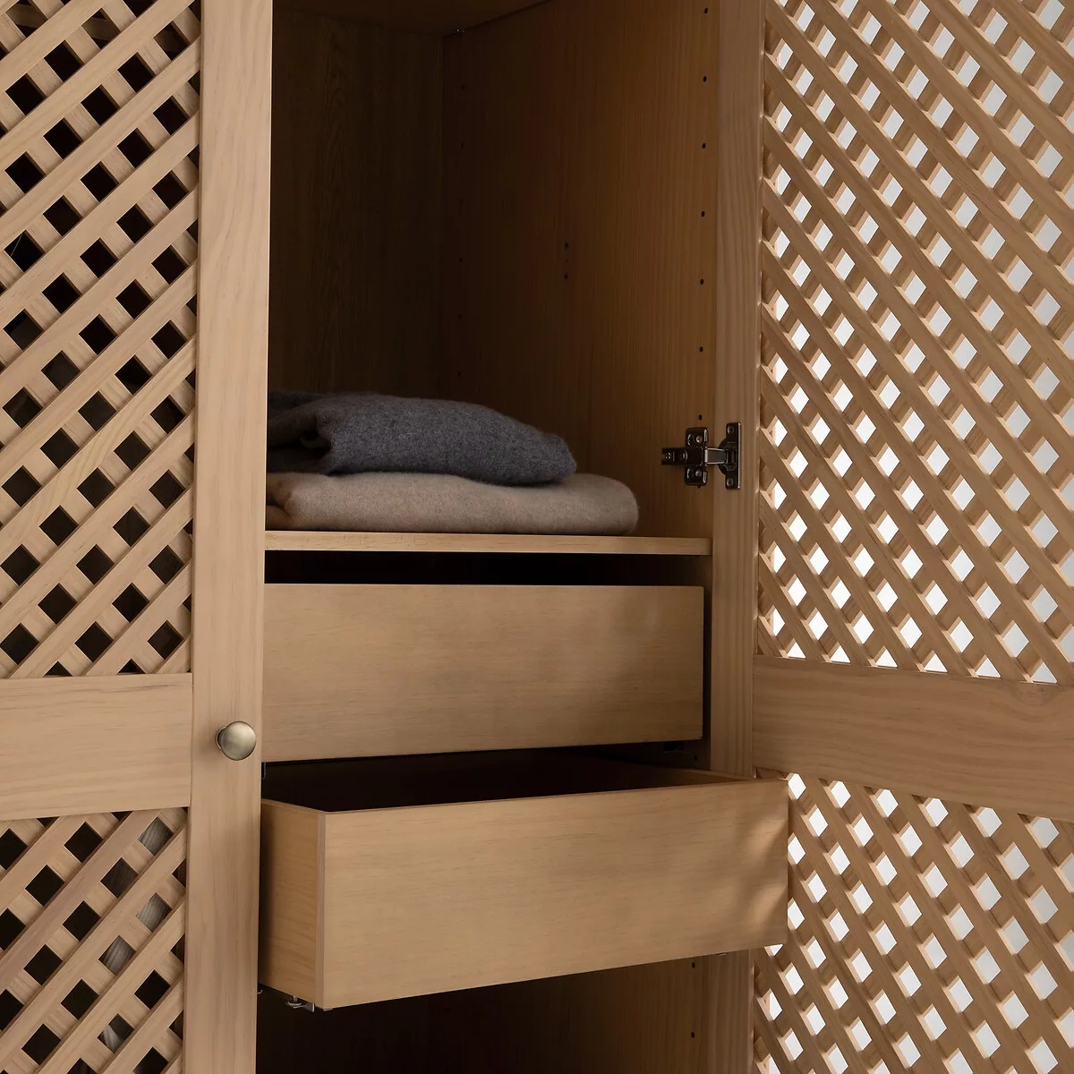 • Portes ajourées avec treillis en pin, finition nitrocellulosique