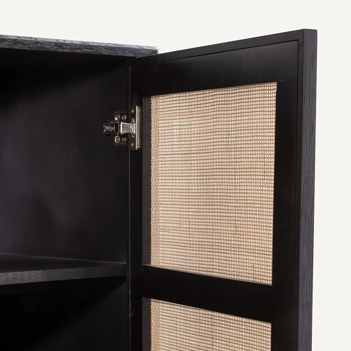 •  2 portes en MDF et rotin tressé de manière artisanale