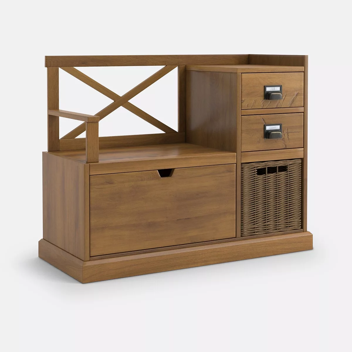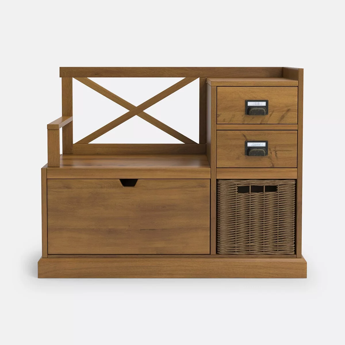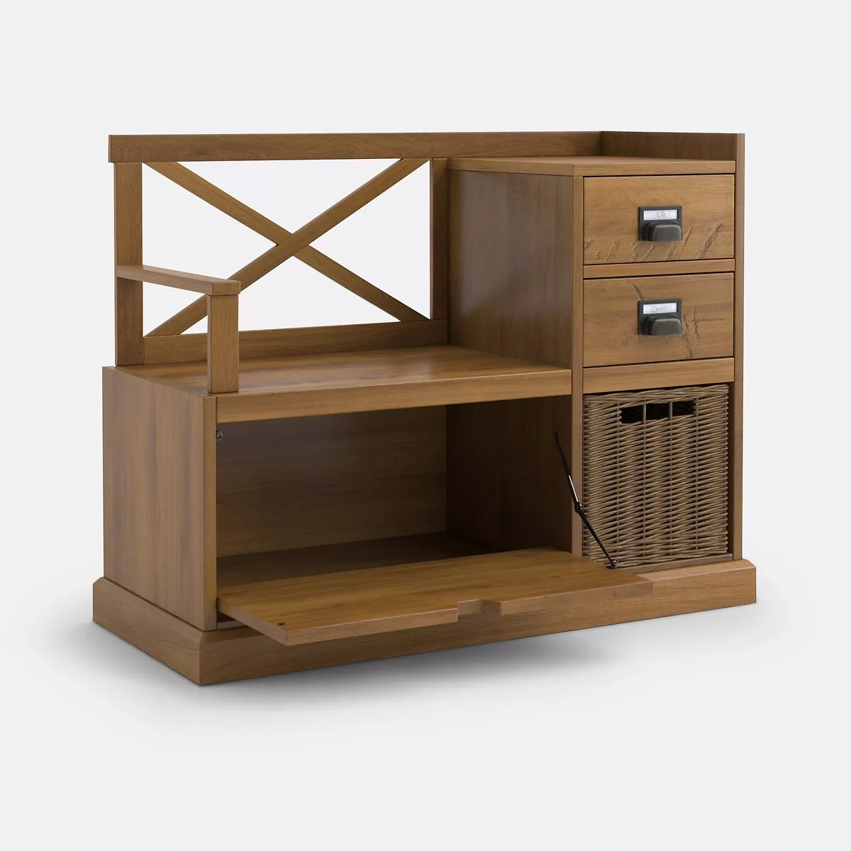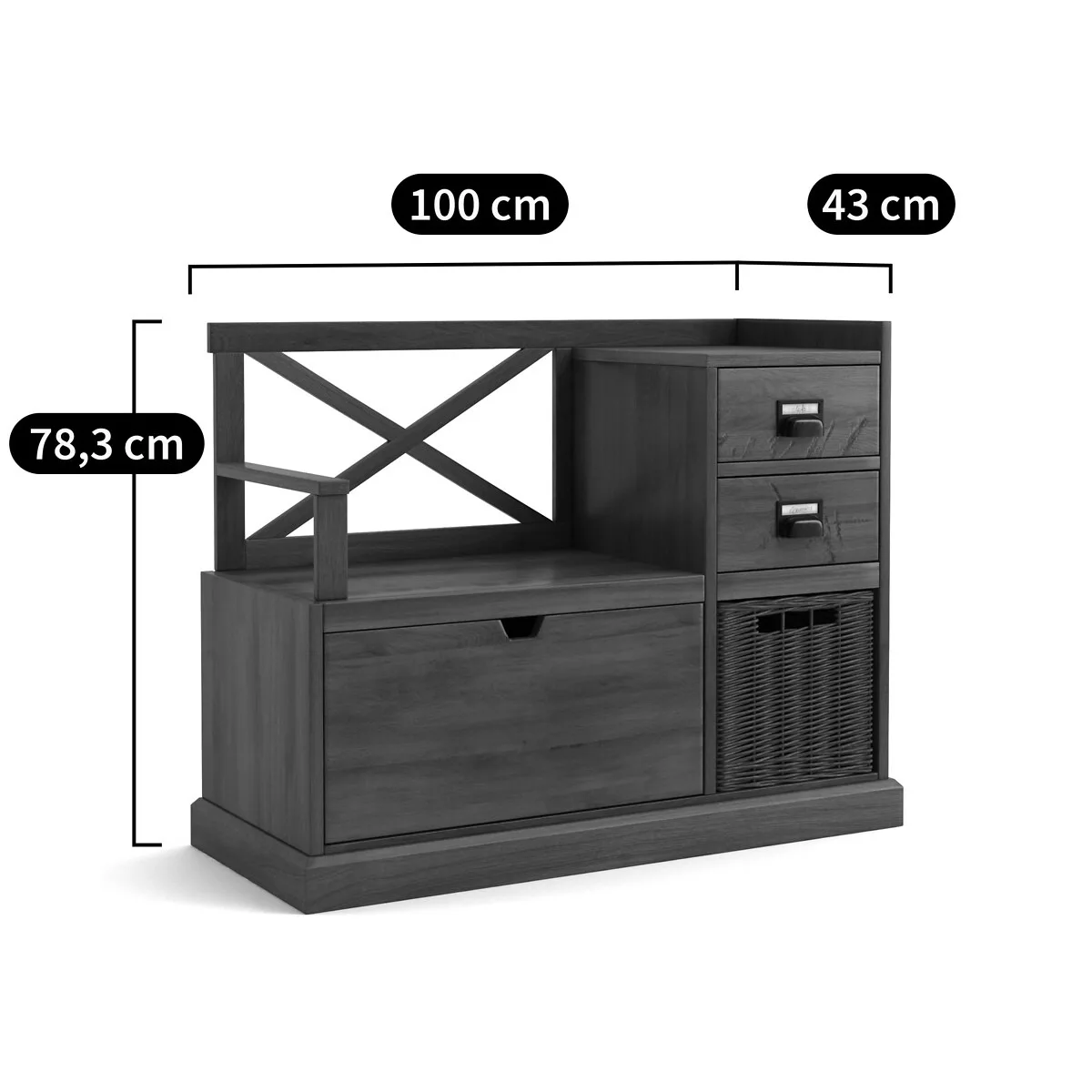 •  2 tiroirs côté avec rangement panier dessous