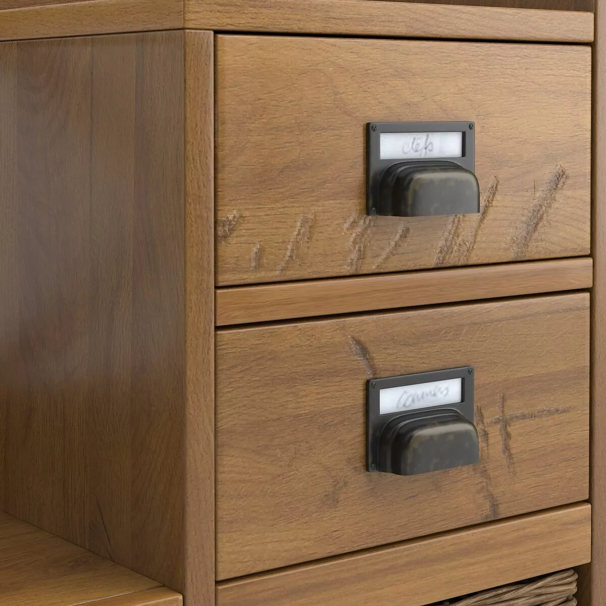 •  2 tiroirs avec poignées porte-étiquettes