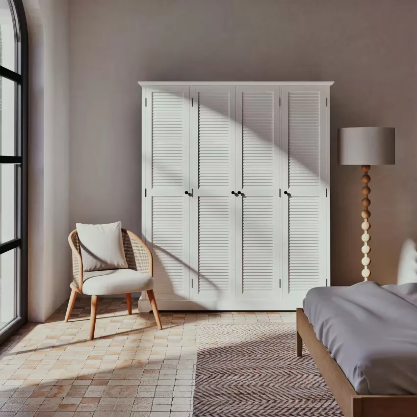 Le murmure des vagues et le soleil des îles vous font rêver ? Retrouvez tous le charme des plages exotiques grâce au dressing blanc BARBADE. Ce dressing 2 portes avec ses portes persiennes vous emmènera vers les plus belles destinations. Un aménagement chambre idéal pour passer une nuit reposante dans une ambiance chaleureuse et chic.