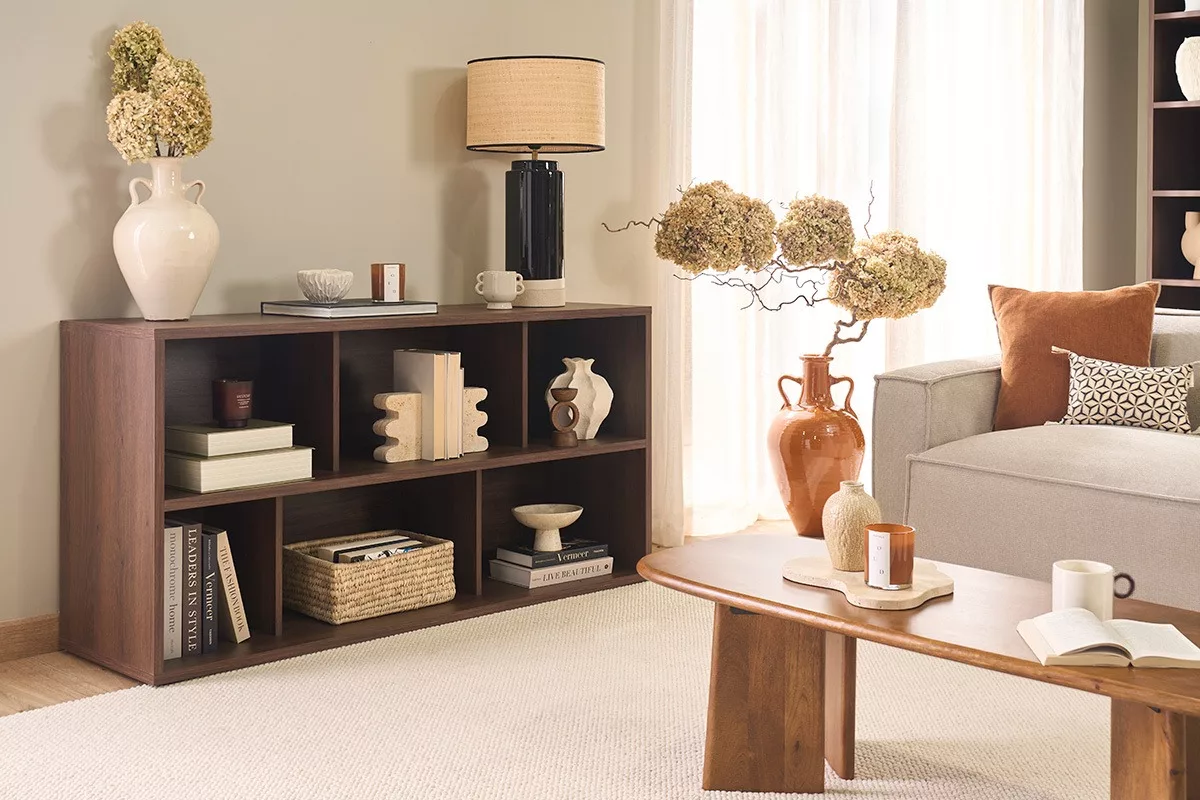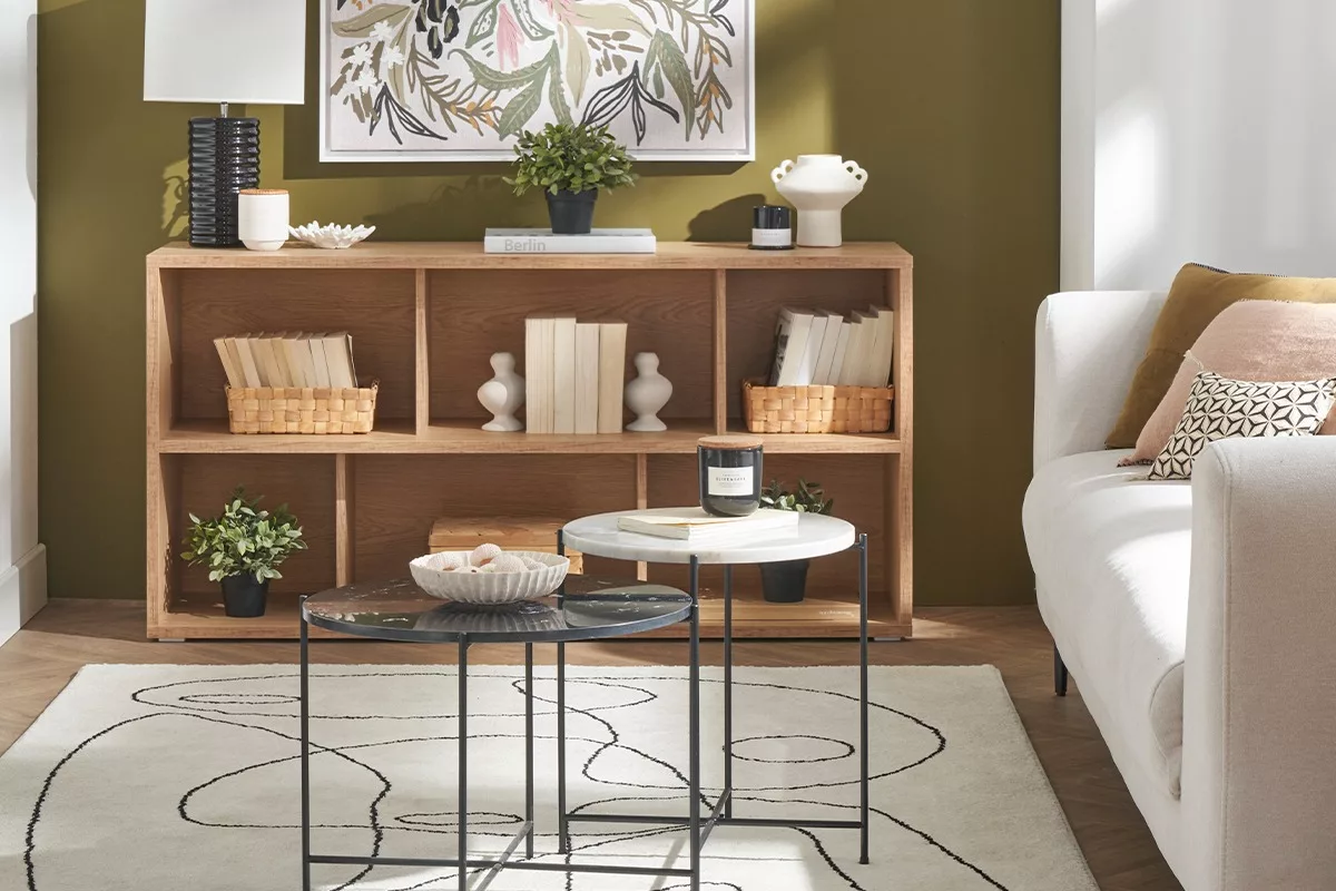 Salon, chambre, entrée… cette bibliothèque basse autorise de nombreuses associations de style, comme d’aménagement et se glisse facilement dans toutes les pièces de la maison ! Aux petites dimensions (L140 x P40 x H71 cm) et au look indémodable, c’est un meuble facile à adopter dans son intérieur.