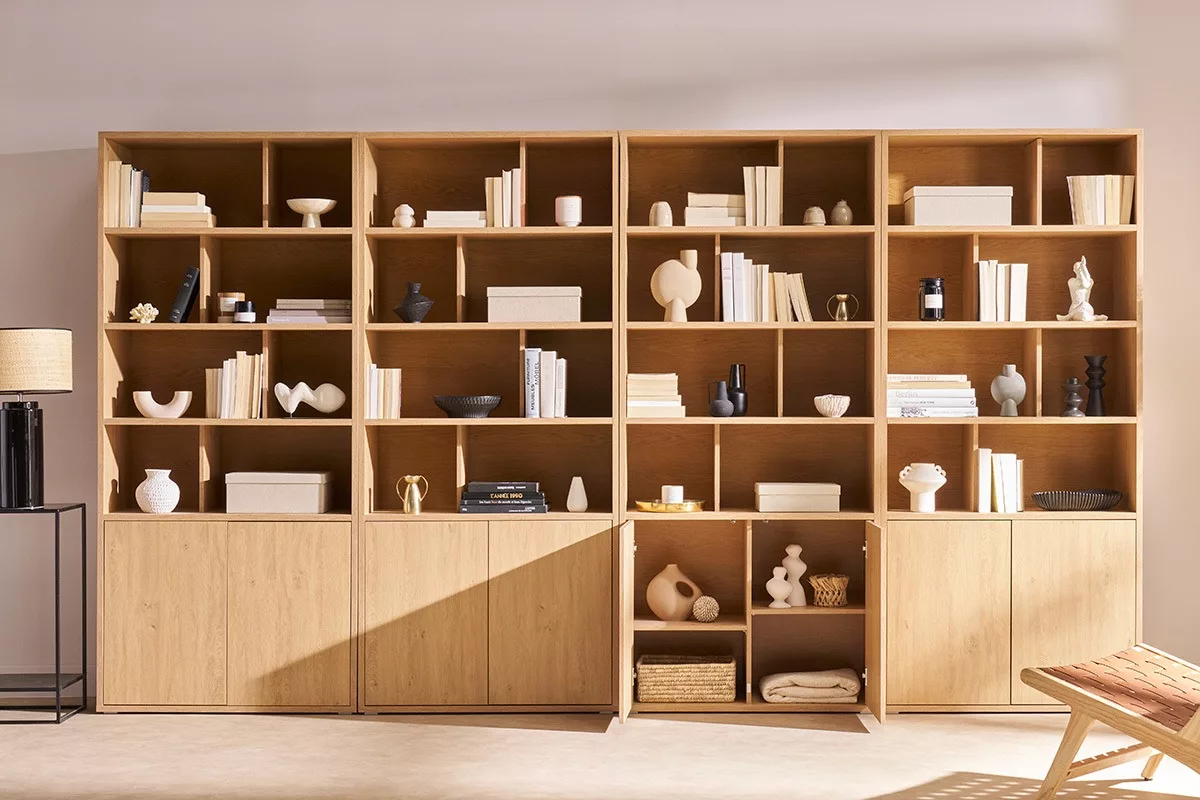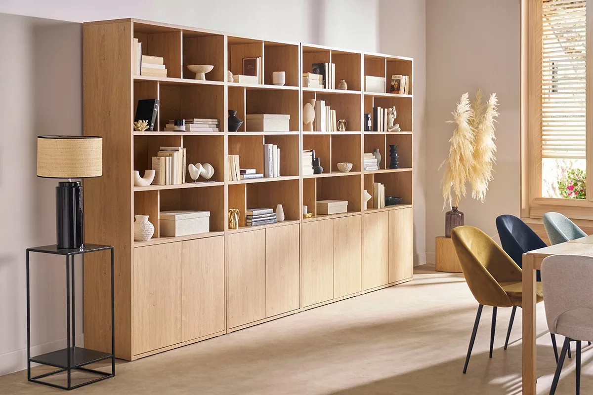 Grâce à ses 8 niches ouvertes et à ses 4 rangements fermés, NAGANO est une bibliothèque ultra fonctionnelle. On adore ce meuble de rangement en bois pour compléter l’aménagement d’un séjour, d’une chambre, ou d’un bureau !