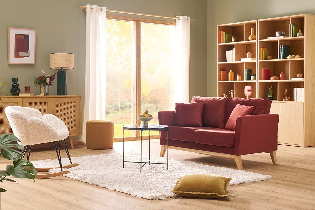 Pour l’associer, des pièces de mobilier aux tons naturels mettront particulièrement en valeur les nuances chaudes de l’effet chêne. Buffet, table à manger, ou encore console en bois contribueront à créer un « home sweet home » très harmonieux.