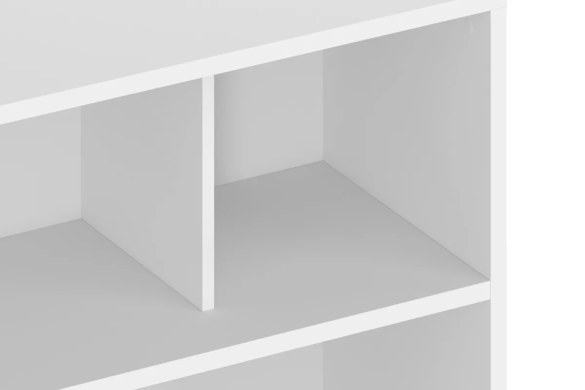 Cette bibliothèque en bois blanc aux lignes essentielles s’intègre avec brio dans tous les intérieurs !