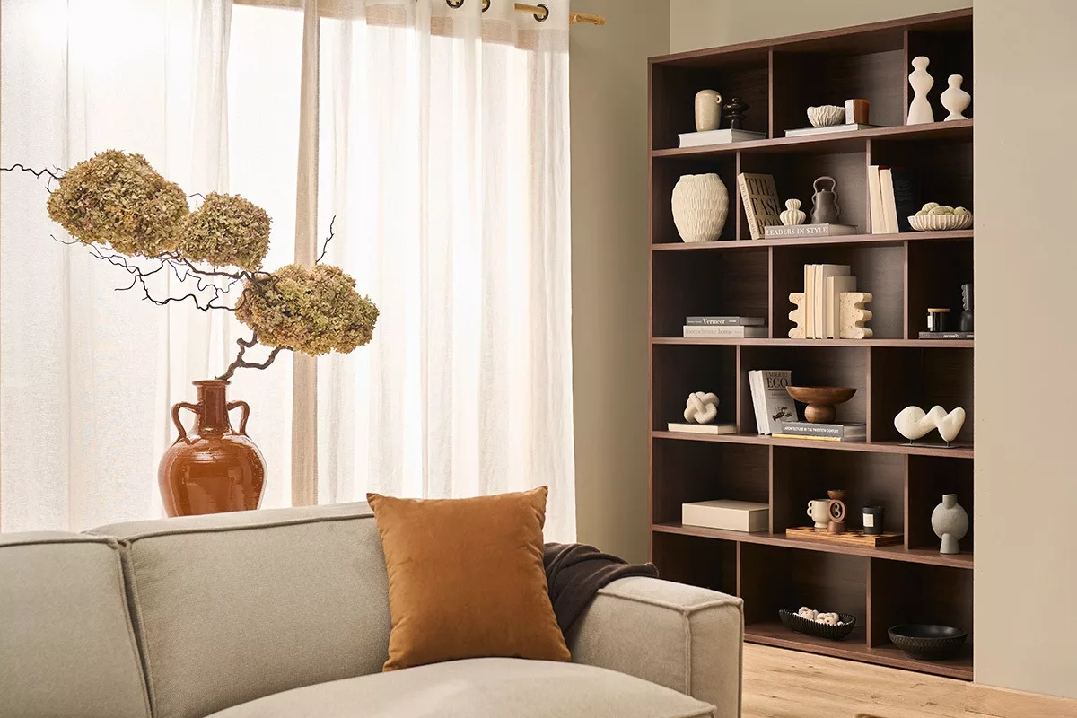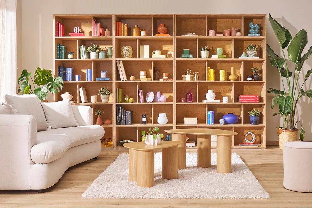 La bibliothèque EPURE se prête à de nombreuses utilisations. Si dans le séjour elle exposera vos livres et plus beaux objets déco, elle peut aussi faire office de dressing dans une chambre grâce à sa grande profondeur (40 cm). La petite astuce déco ? Disposez des casiers en fibres naturelles sur certaines étagères afin de ranger les petits objets du quotidien.