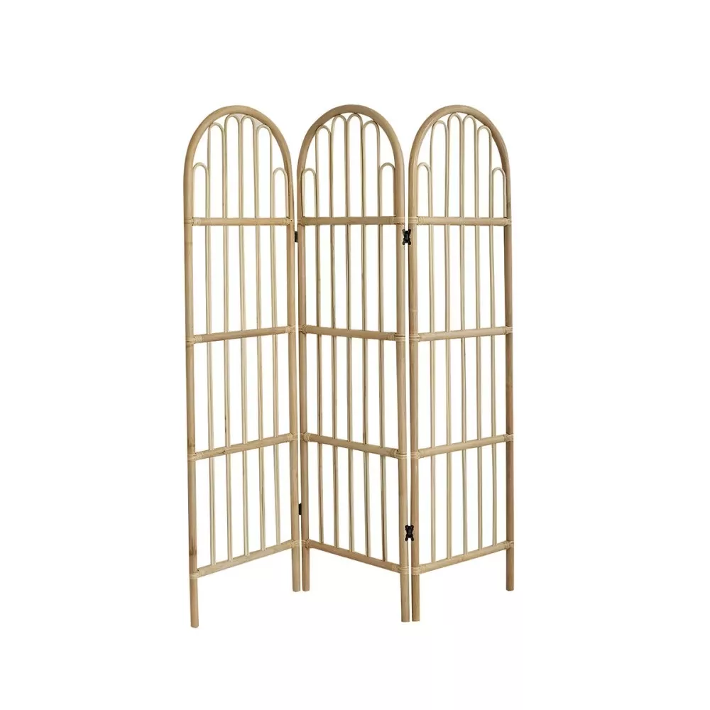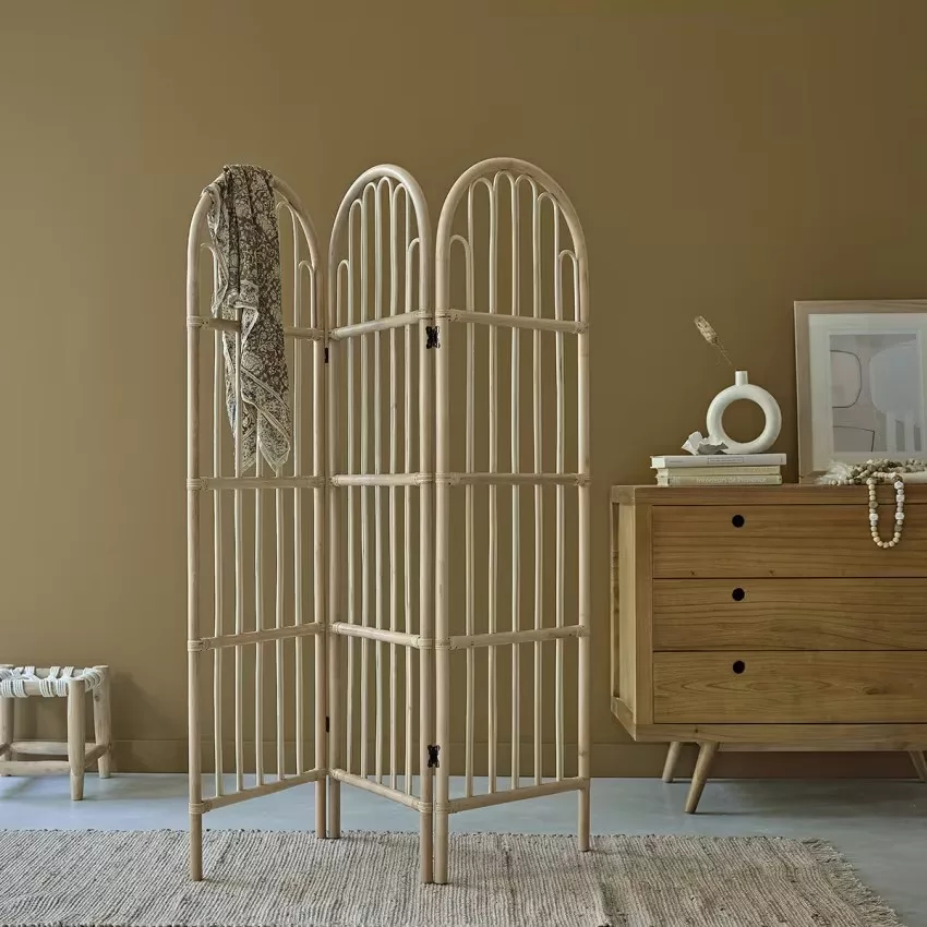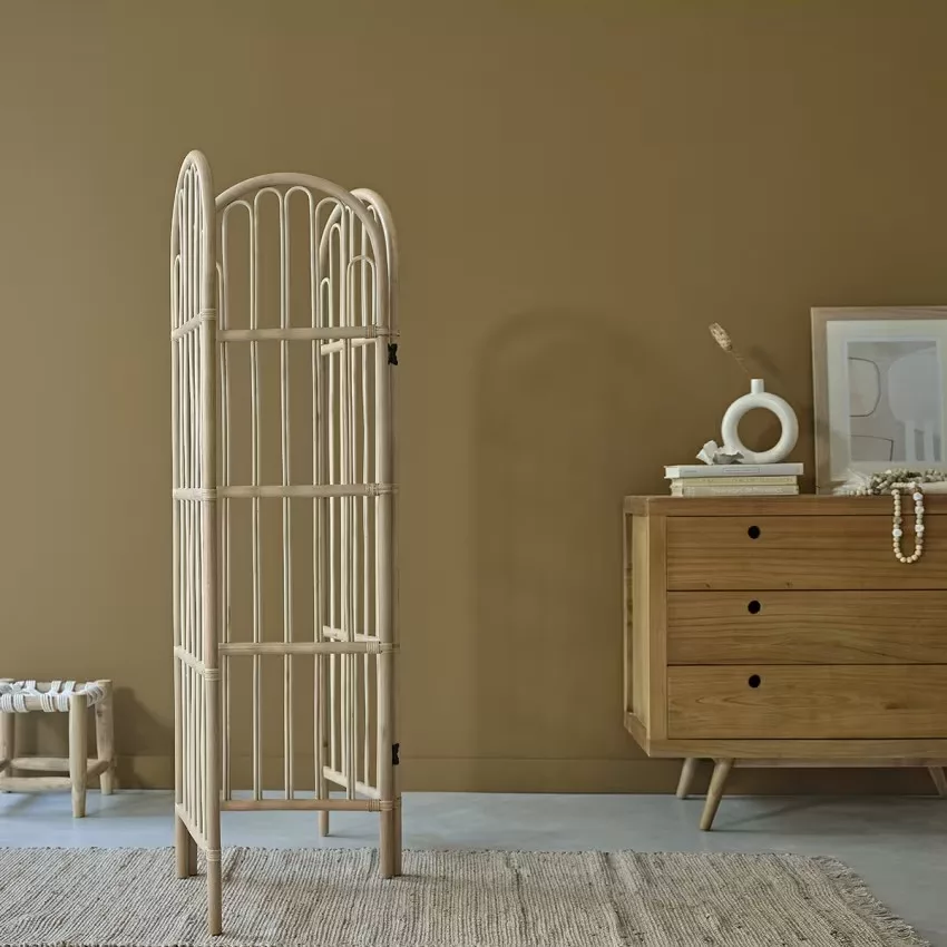 Parfait pour séparer les espaces et se créer un coin d’intimité, ce paravent en rotin naturel ajoutera un vrai plus déco à votre chambre à coucher. Le paravent se ferme intégralement mais ne peut pas être totalement déplié. Caractéristiques : Matière : Rotin – Couleur : Naturel – Largeur : 126 cm – Profondeur : 30 cm – Hauteur : 170 cm – Poids : 6,5 kg – Garantie : 5 ans – Montage : Livré monté.
