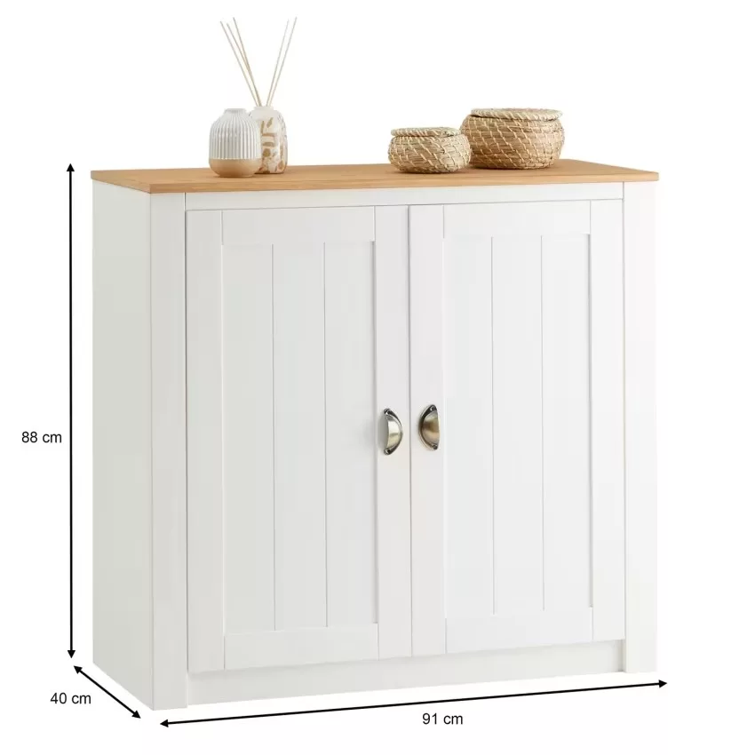 … sera parfait pour aménager les petits et grands espaces. Les 2 portes battantes révélant 4 tablettes, vous offriront suffisamment de place pour y ranger votre vaiselle et autres objets du quotidien. Avec sa structure en pin massif, ce bahut au style classique et épuré trouvera forcément sa place dans otre intérieur. N’hésitez pas à compléter votre mobilier avec les autres meubles de la gamme Bolton !