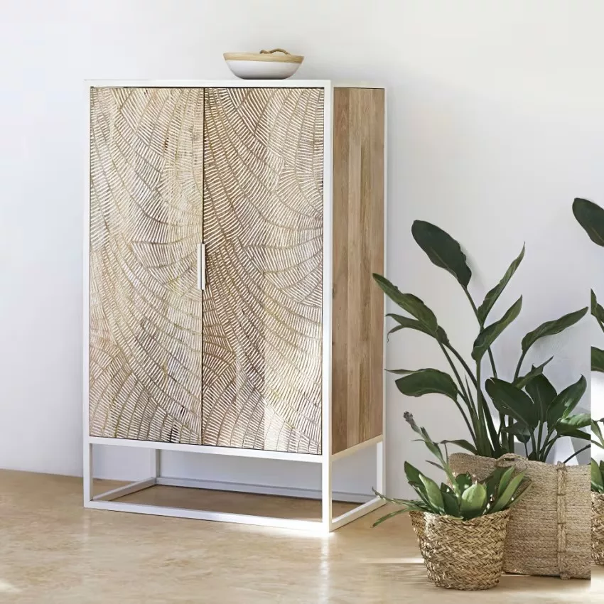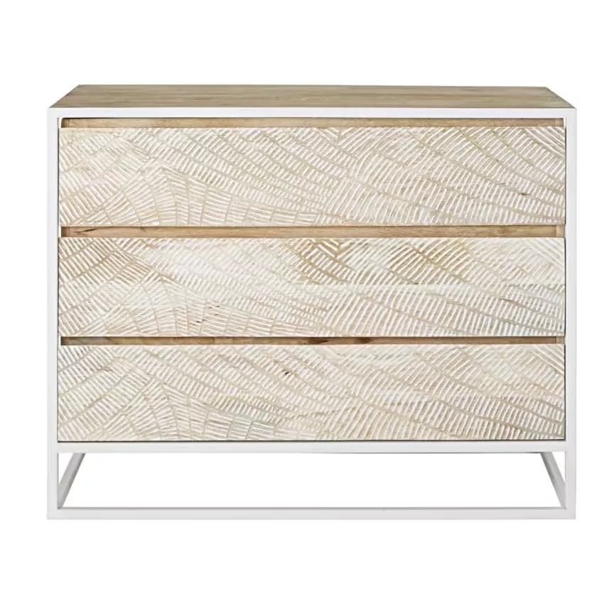 Vous pensez déjà à repartir en vacances, mais plus précisément dans votre cocon au bord de mer, en imaginant une nouvelle déco ? Préférez cette commode 3 tiroirs en manguier massif sculpté et métal blanc BORACA qui aura toutes les qualités pour dynamiser un salon immaculé, une salle de bains manquant de rangement ou une chambre d’ami lumineuse. Réalisé en bois massif, son trio de casier offre des façades taillées à la main peintes d’une nuance opaline, confiant son encadrement et son piétement en métal assorti à cette commode en bois et détails travaillés dans votre intérieur !