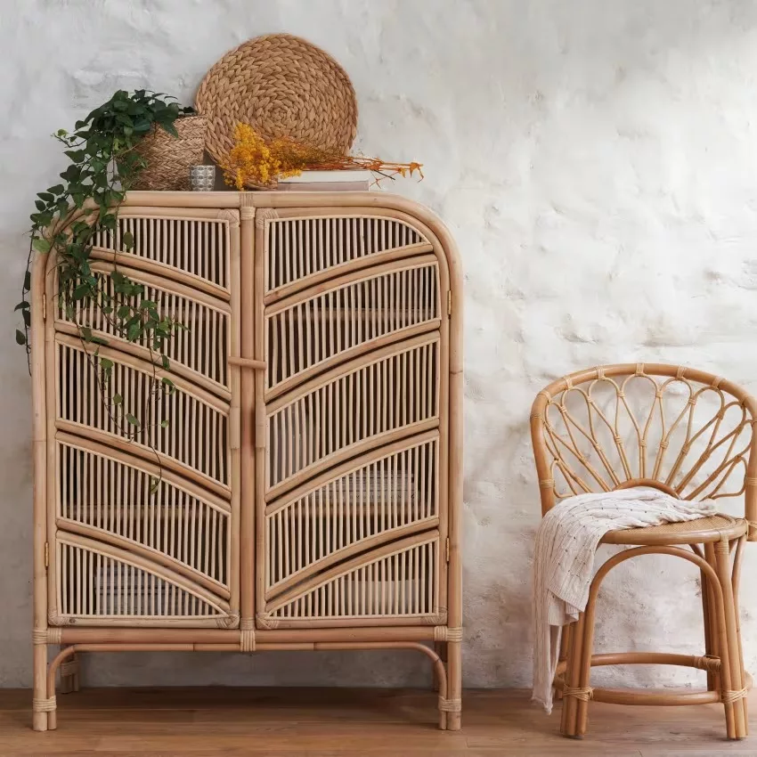 Derrière ses deux portes habillées de cannage de rotin, toutes vos affaires trouveront leur place.