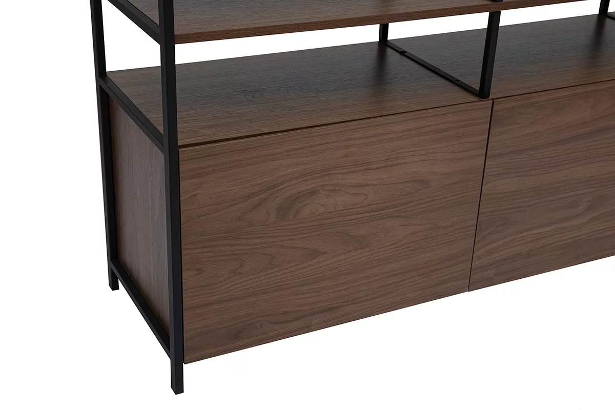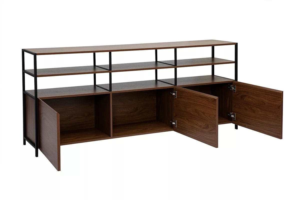 Buffet métal et finition bois livré prêt à monter. Afin de garantir une stabilité optimale, le meuble est livré avec un kit de fixation murale.