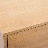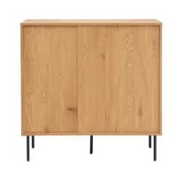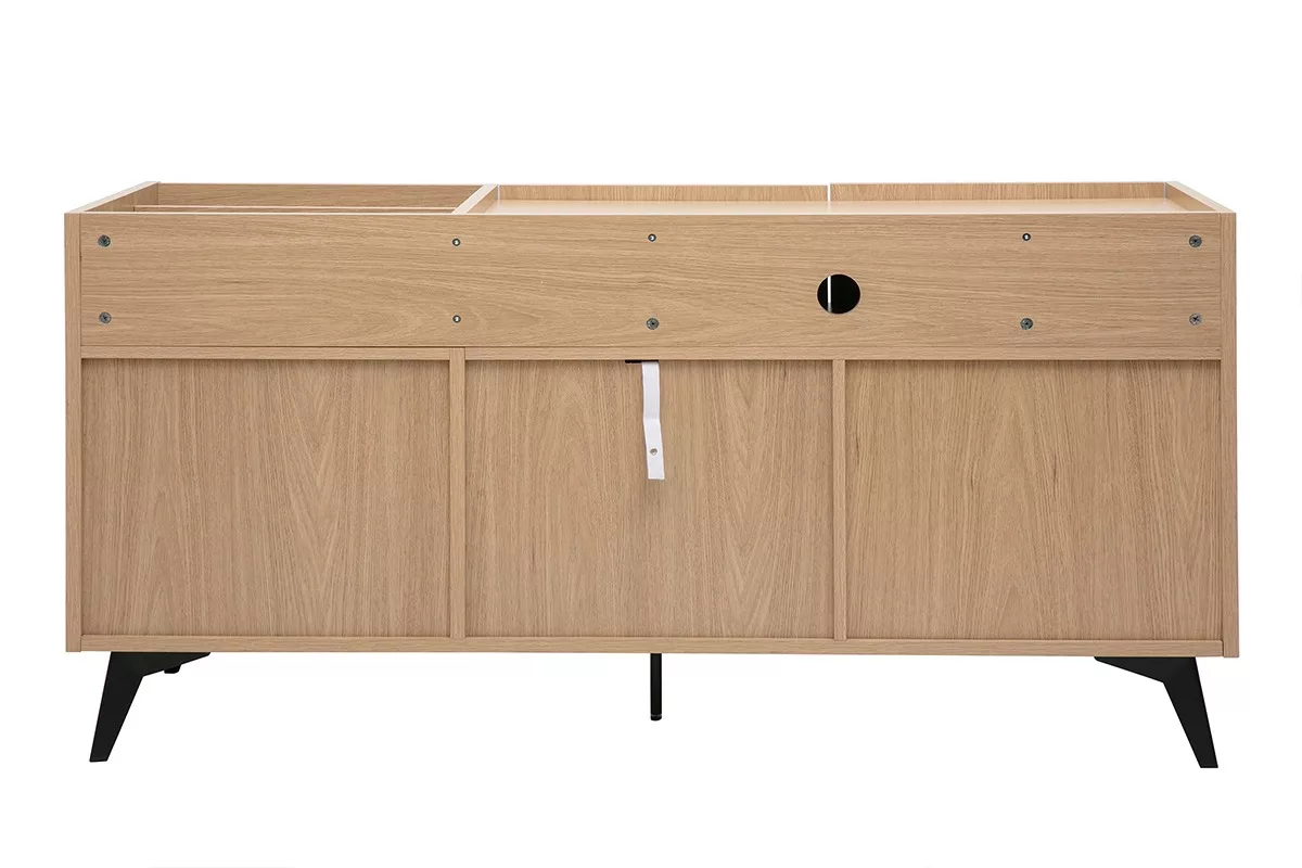 Son design contemporain s’appuie sur des lignes droites et minimalistes, sublimées par une finition chêne clair lumineuse qui apporte chaleur et naturel à votre pièce. Les pieds fins en métal noir ajoutent une touche industrielle et assurent une excellente stabilité, tout en créant un contraste élégant qui s’adapte à différents styles décoratifs : scandinave, moderne ou encore vintage.