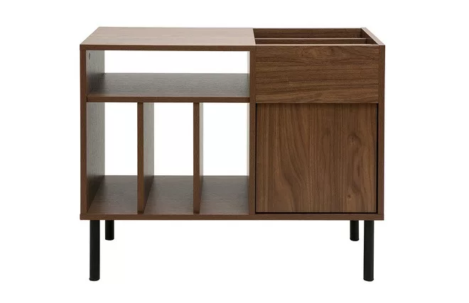 Conçu pour répondre aux besoins des amateurs de décoration comme des mélomanes avertis, ce buffet compact et fonctionnel se distingue par son design raffiné et ses multiples rangements adaptés aux vinyles et aux accessoires.