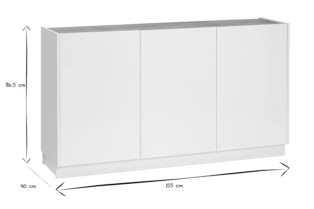 Soyez le premier à laisser votre avis sur “Buffet design blanc laqué brillant et bois clair 3 portes L155 cm NELIO”