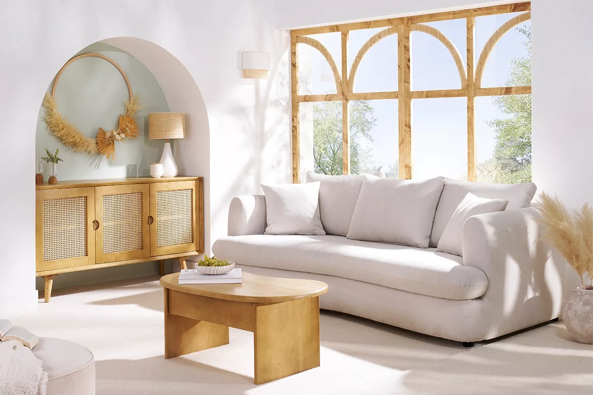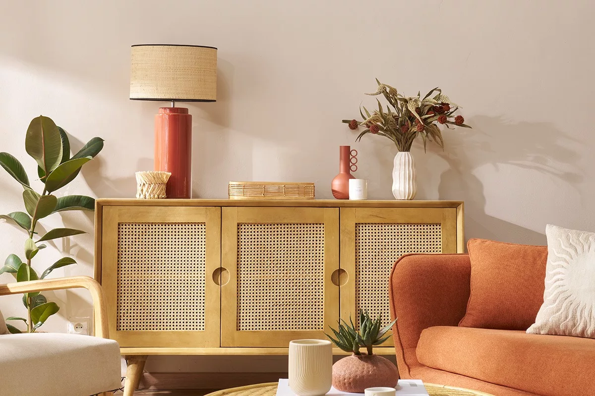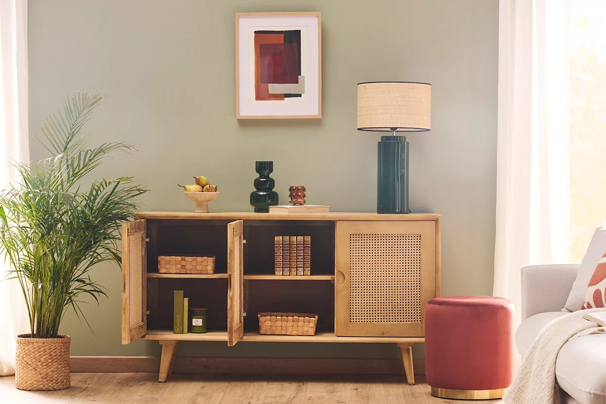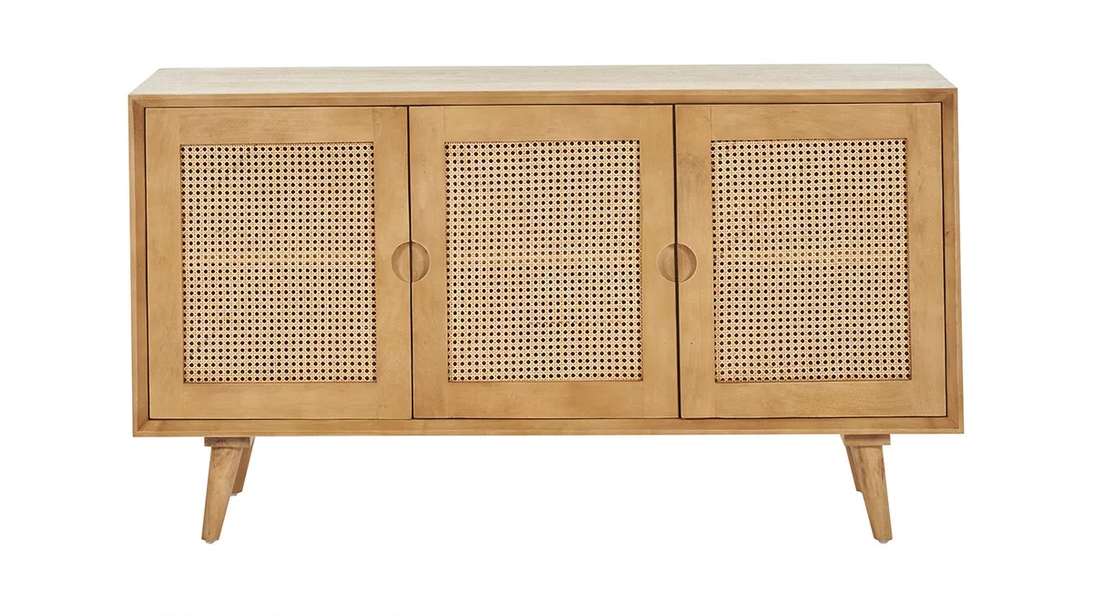 Bohème, ethnique, vintage, scandicraft ou japandi… Cet élégant buffet bas 3 portes en bois massif et cannage rotin (fond du meuble en panneaux de fibres de bois) assurera une belle dose de naturel dans de nombreux styles d’intérieur, même les plus modernes ! Dans un salon, une grande entrée ou un bureau, adossé à un mur uni ou une tapisserie à motifs, LAKA habillera à lui seul la pièce de vie.
